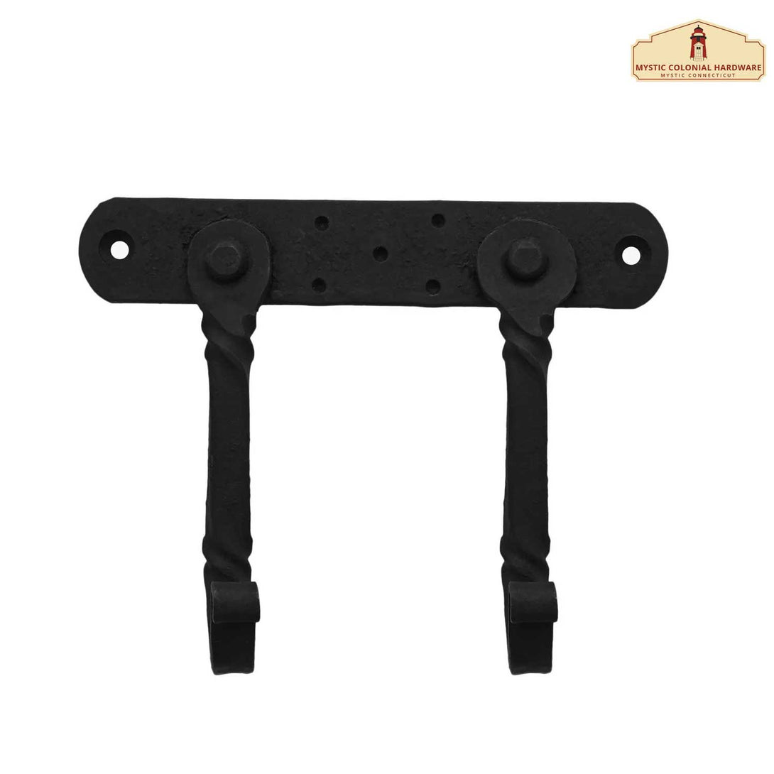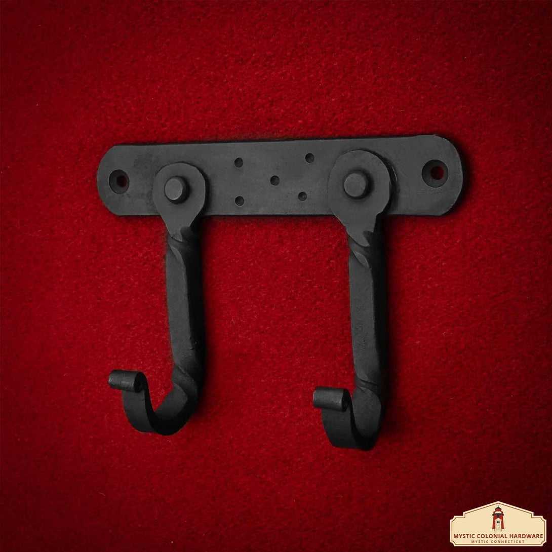 Hand-forged iron 2-hook wall hanger with rustic oil-blackened finish. Perfect for Victorian, medieval, steampunk, and gothic décor. Durable and timeless design.