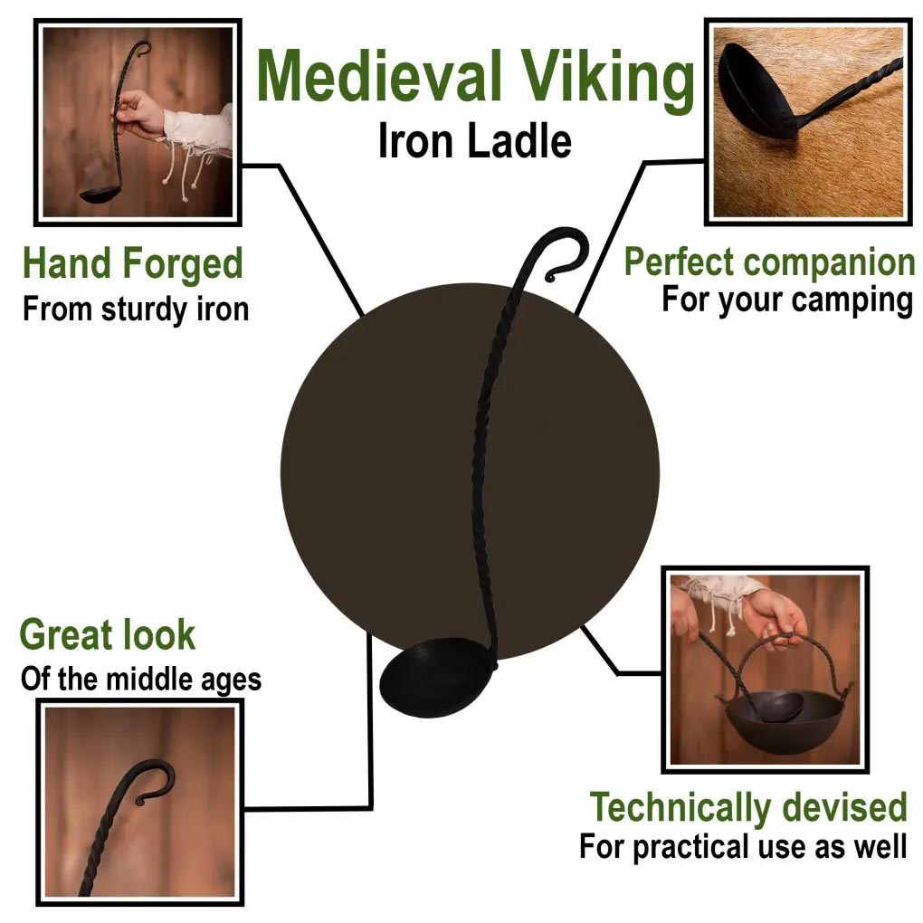 Whether you’re preparing a feast at a LARP camp, hosting a medieval banquet, or simply adding a period touch to your kitchen, this ladle promises performance and presence. Built to handle open flames and heavy use, it’s a timeless companion for reenactors, chefs, and fire-side cooks alike.